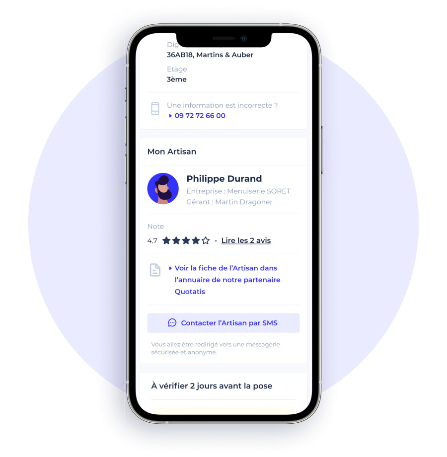 Vous êtes informé dès qu’un de nos Artisans est trouvé pour votre Pose !