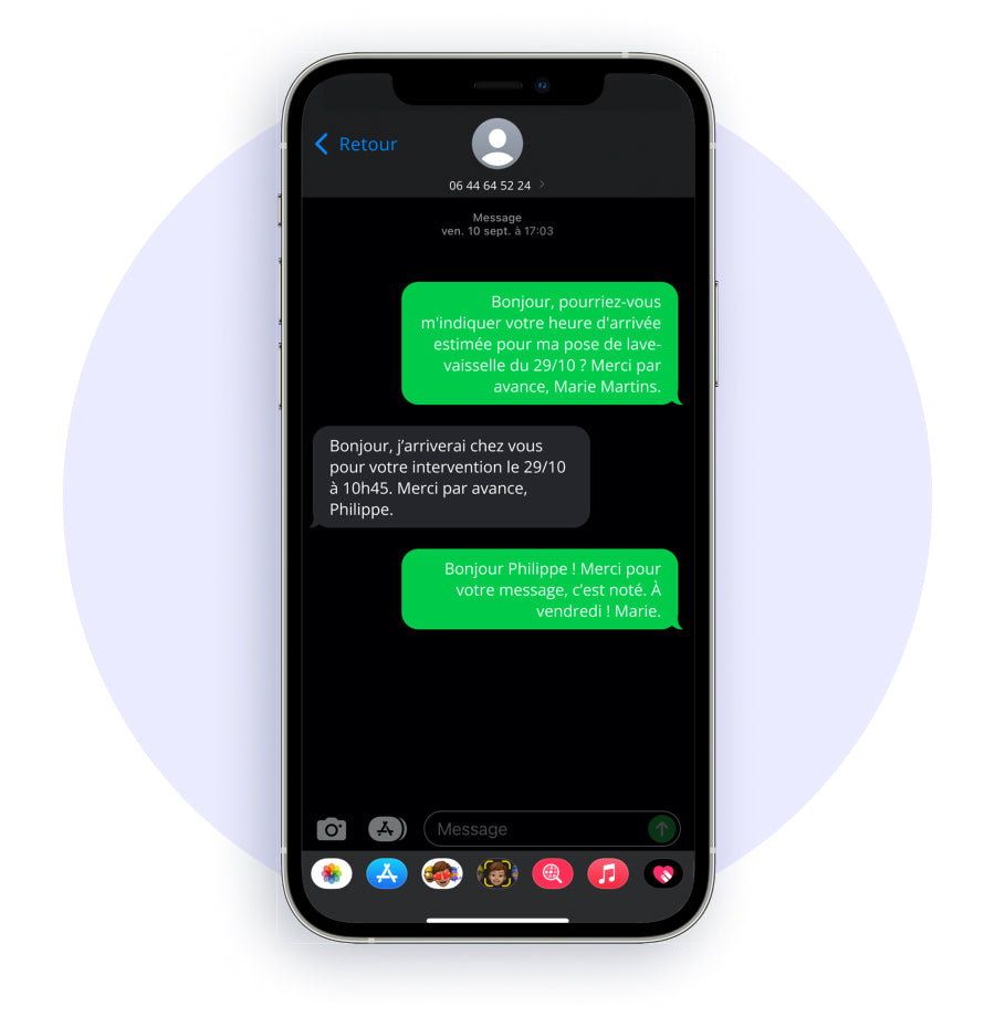 Vous pouvez contacter notre Artisan à tout moment via la messagerie sécurisée, pour convenir de l’heure d’arrivée par exemple.